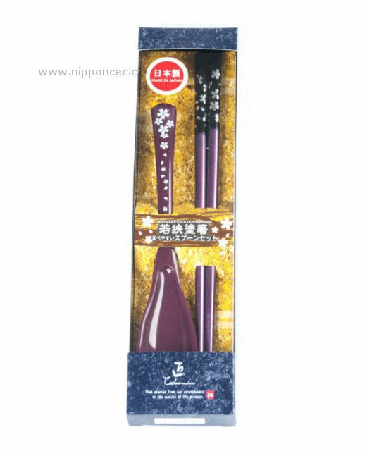 Set japonských jídelních hůlek a lžíce Wakasanuri Purple