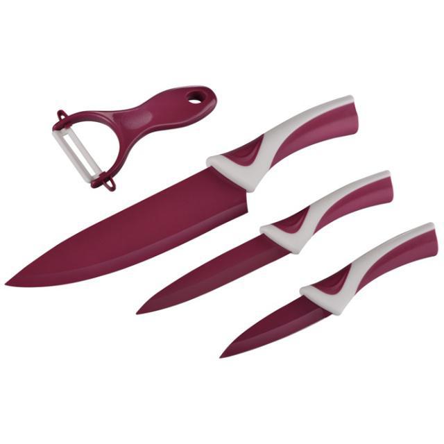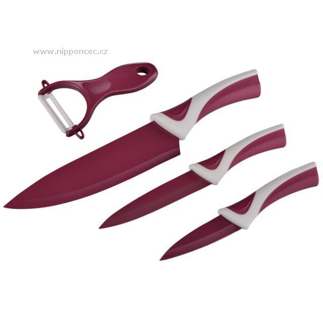 Praktický 4 dílný set kuchyňských nožů s barevnou čepelí z tvrzené oceli. R