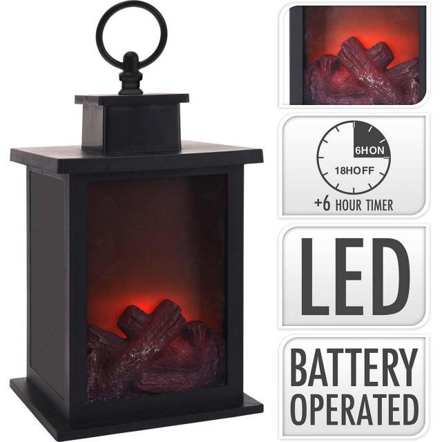 LED lucerna s imitací hořícího krbového dřeva prozáří každou místnost. Lucerna je na baterie, nezávislá na síťovém napájení. Pomocí časovače si určíte 6 hodin, kdy bude lucerna svítit. V horní části lucerny je kroužek na zavěšení, který rozšiřuje možnosti jejího umístění. Ať už lucerničku umístíte kamkoliv, její hřejivé světlo navodí útulnou atmosféru nejen o Vánocích.