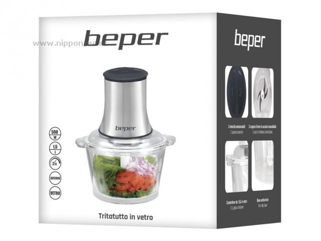 Kuchyňský sekáček BEPER P102ROB001 s výkonem 500 W snadno naseká zeleninu, ovoce, sýry, ořechy, bylinky i led. Zvolit můžete ze 2 různých rychlostí sekání. Vybavený je 2 noži z nerezové oceli. Skleněná nádoba o kapacitě 1,5 L zůstává bez zápachu a chuti a nedochází u ni k nevzhlednému obarvení od potravin.
