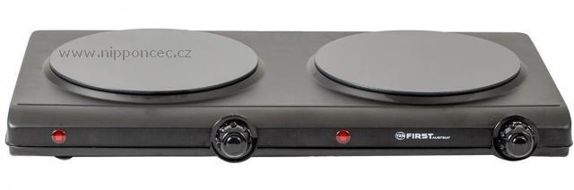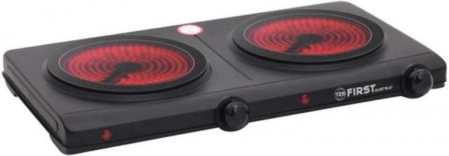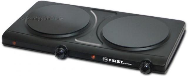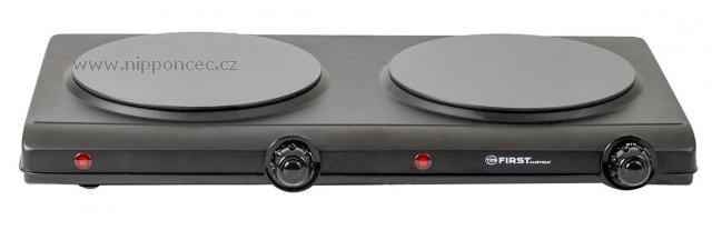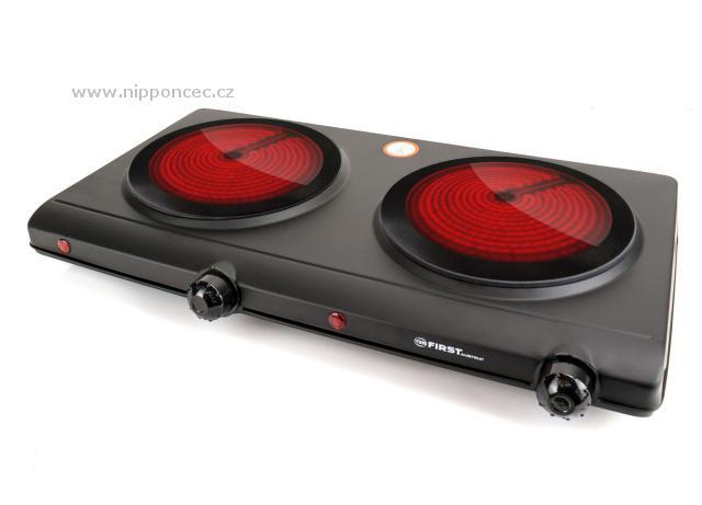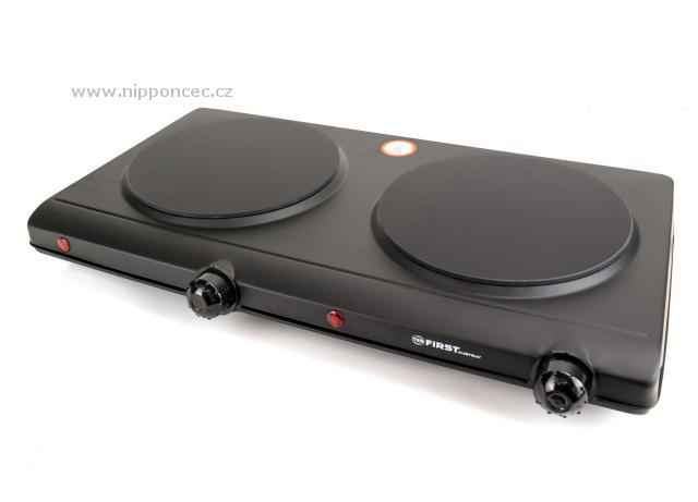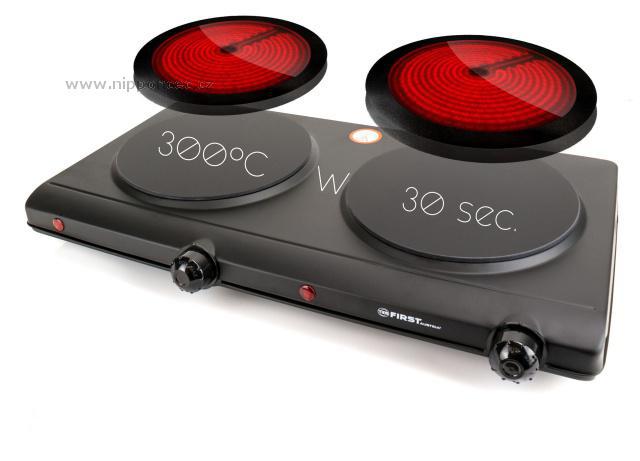 Klasika domů, na chatu, chalupu a stejně tak do kanceláře. Sklokeramický dvouplotýnkový vařič First v černé barvě, s dvěma ovladači pro každou ploténku. Ve srovnání s litinovými ploténkami šetří čas i energii. Rychlý ohřev ploten - za 30 sekund 300 St. Celsia. Dlouhá životnost a příkon 2x1250 W pro každou ploténku, to jsou další parametry tohoto praktického výrobku.