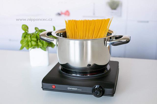 Klasika domů, na chatu, chalupu a stejně tak do kanceláře. Sklokeramický dvouplotýnkový vařič First v černé barvě, s dvěma ovladači pro každou ploténku. Ve srovnání s litinovými ploténkami šetří čas i energii. Rychlý ohřev ploten - za 30 sekund 300 St. Celsia. Dlouhá životnost a příkon 1000W a 1500W pro menší a větší ploténku, to jsou další parametry tohoto praktického výrobku. S možností využití držadel na přenášení - ta jsou dodávána zvlášť, je možné je k vařiči připevnit, nebo vařič používat bez nich.