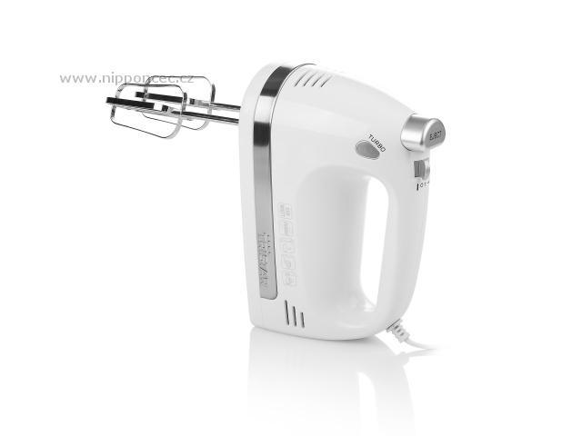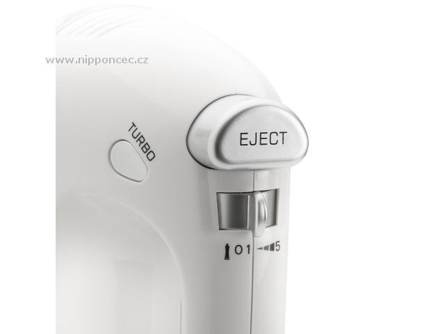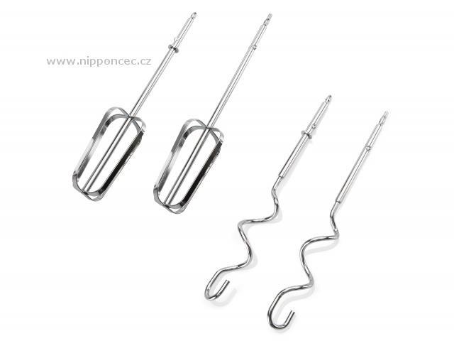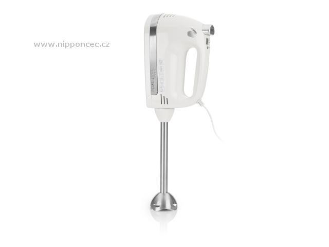 Součástí balení jsou dvě šlehací metly a 2 hnětací háky - např. na těsto, které velmi jednoduše za pomoci tlačítka na vrchní straně přístroje uvolníte pro výměnu příslušenství. K tomu navíc XL nerezový nástavec jako ponorný mixér. Šlehač má 5 rychlostí pro komfortní použití a funkci TURBO pro krátkodobé intenzivní rázy při šlehání. Výrobek je vybaven bezpečnostním spínačem. Klasický pomocník pro každou kuchyni - vynikající poměr výkon ku cena.