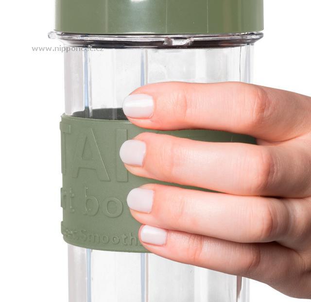 připraví neobyčejně jemné, až sametové smoothie. Stane se nejlepším pomocníkem i při přípravě dětských kašiček a přesnídávek. Je vybaven integrovanou bezpečnostní pojistkou, která zajistí, že se mixér nespustí, aniž je správně nasazena láhev. Spodní část je vyrobena ze speciálního pogumovaného materiálu. Disponuje dvěma mixovacími nádobami, ze kterých můžete rovnou pít. Stačí pouze vyměnit nože za víčko a lahev se smoothie si můžete vzít kamkoliv s sebou. Víčko je vybavené poutkem a speciálním dvojitým těsněním, takže máte jistotu, že se vám váš nápoj nevylije. Perfektně zapadne také do držáku nápojů v autě. Proti vyklouznutí je lahev vybavena protiskluzovým gripem.