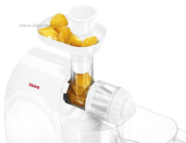 Se šnekovým odšťavňovačem Nova 20 0100 můžete efektivně získat šťávu i z tvrdé zeleniny - jako je mrkev, zelí nebo kapusta, ale i z listové zeleniny, samozřejmě perfektně i z běžných druhů ovoce a zeleniny. Odšťavňovač je osazen výkonným DC tichým motorem s 5ti letou zárukou. Plnicí otvor výrobku je velký - lze vložit i větší kousky ovoce nebo zeleniny. Čistění je snadné - odšťavňovač je kompletně rozložitelný pro snadnou údržbu a je vybaven zpětným chodem, který brání ucpání dužninou a pojistkou proti přehřátí, také dvěma nádobkami - na šťávu a dužninu. Vynikající poměr výkonu ku cena - srovnatelné výrobky od jiných značek se prodávají za výrazně vyšší ceny - investice se vyplatí.