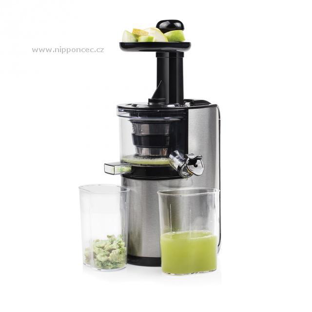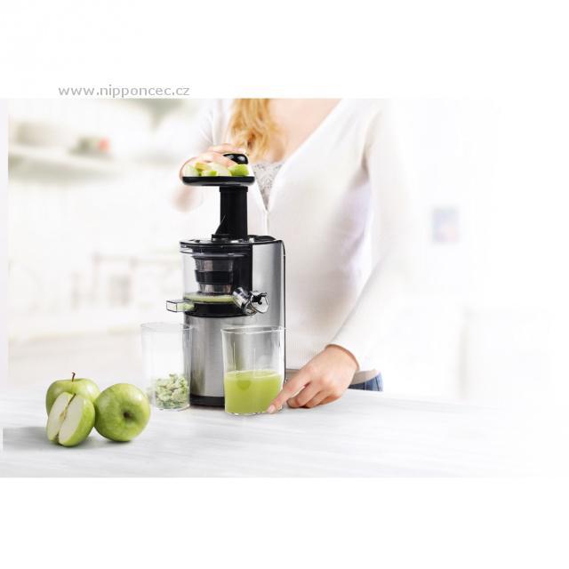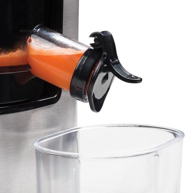 Odšťavňovač je osazen výkonným DC tichým motorem. Pohodlné plnění ovocem i zeleninou - vhodné pro tvrdé i měkké plody. Čistění je snadné, odšťavňovač je kompletně rozložitelný pro snadnou údržbu a je vybaven zpětným chodem, který brání ucpání dužinou a také dvěma nádobkami, na šťávu a dužninu. Získávání šťávy je pohodlné díky výpusti šťávy se systémem proti odkapávání.