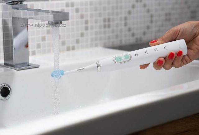 Kartáček disponuje časovačem, který pohlídá délku čištění. Ta je nastavena na 2 minuty dle doporučení zubních lékařů. Pro přesnou kontrolu nad délkou čištění v jednotlivých částech úst je časovač rozdělen na 4 časové intervaly po 30 vteřinách. Součástí balení jsou dvě vyměnitelné kartáčové hlavice, a to Daily Clean pro každodenní čištění a Sensitive pro citlivé zuby a dásně. Hlavice doporučujeme měnit každé 3 měsíce, aby byla zajištěna efektivita čištění. Stupeň ochrany IPX7 umožní opláchnout ho pod tekoucí vodou.