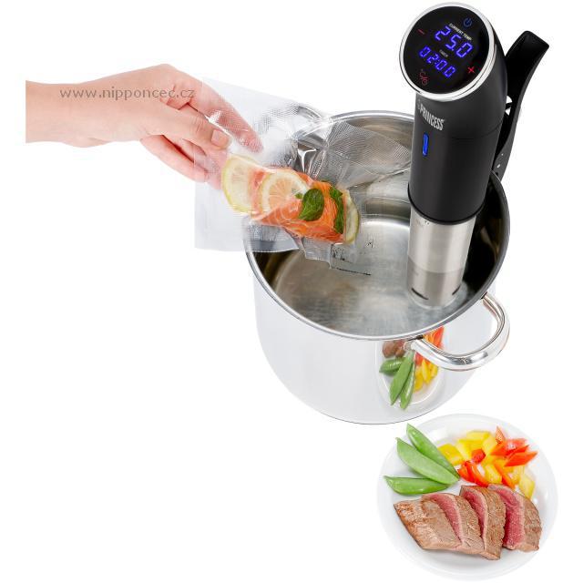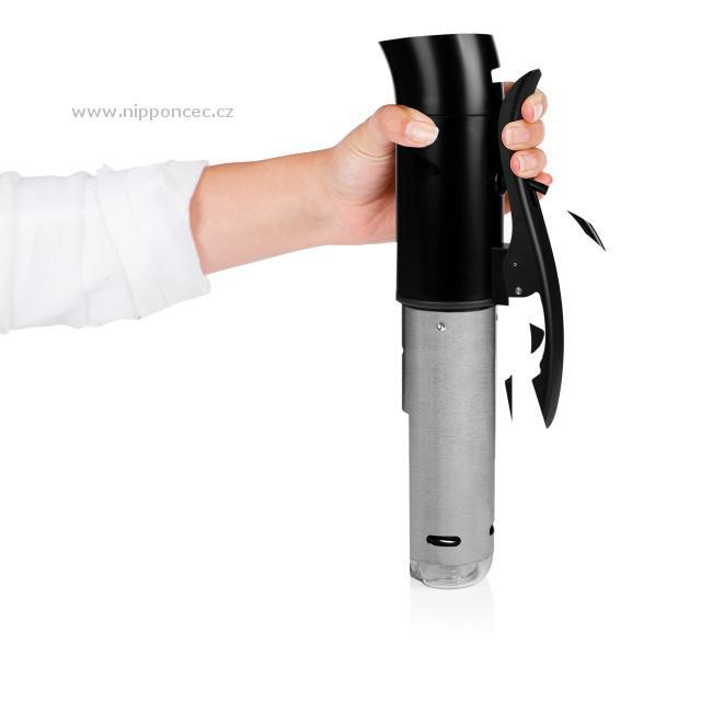 Nemáte v kuchyni dostatek místa pro další velký hrnec a zároveň toužíte po profesionální přípravě jídla přímo z domova? Pak Sous Vide tyč jistě splní všechna vaše očekávání. Díky její kompaktní velikosti ušetříte spoustu místa a zároveň z vás udělá šéf kuchaře světové velikosti. Velkou výhodou je navíc její snadné použití. Stačí připevnit tyč k hrnci, vložit jídlo do vakuových sáčků a nastavit čas a teplotu. Pak jen stačí počkat na lahodný a křehký pokrm plný vitamínu. Disponuje voděodolnou ochranou IPX7, kontrolou a nastavením teploty s vysokou přesností na 0,2°C s teplotním rozsahem 25 - 95°C. Nechybí ani LCD displej pro snadné použití.
