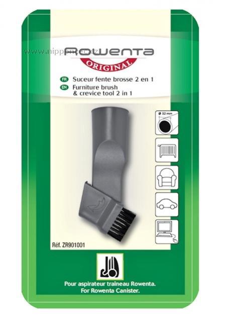Šikovná originální malá hubice pro vysavače Rowenta je v podstatě kombinace minihubice pro tvrdé povrchy a úzké štěrbinové hubice.Pouhým otočením změníte typ hubice - buď nástavec na štěrbiny nebo kartáč: dva nástroje v jednom. Kartáč s dlouhými chlupy využijete na křehké povrchy, úzký nástavec pak jako hubice na těžko přístupná místa (radiátor, počítač, TV, auto).