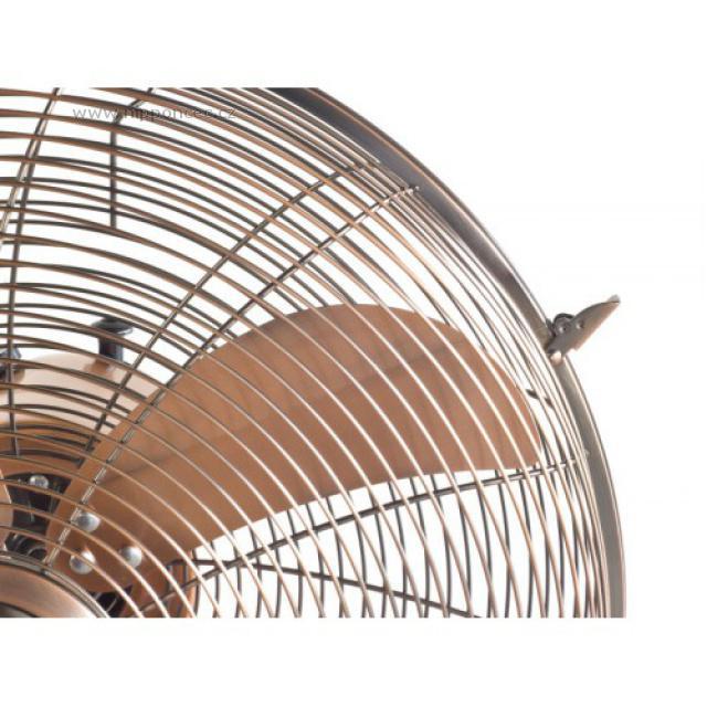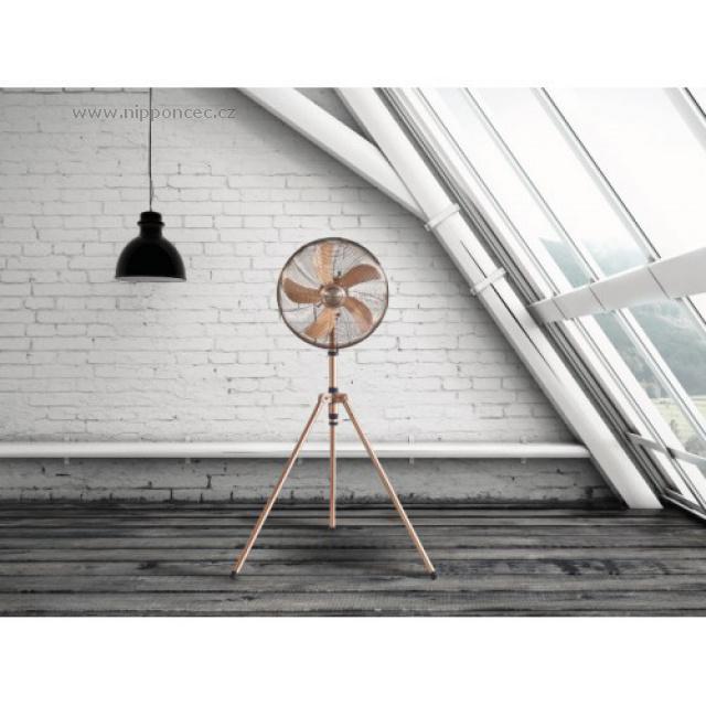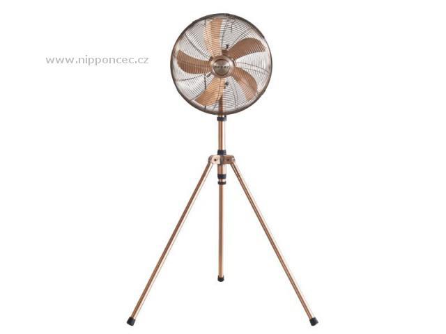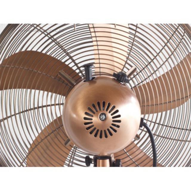 Stylový stojanový RETRO ventilátor BEPER VE119 s měděným designem. Vybaveno 5 hliníkovými lopatkami, které jsou chráněny mřížkou o průměru 40 cm. Můžete nastavit 3 rychlosti a 70° automatickou oscilační funkci pro stejnoměrné rozptýlení vzduchu. Nastavitelná výška až 135 cm.