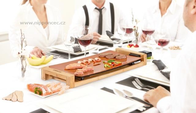 Proč ano? keramická grilovací deska - jde o odolnou a kvalitní žáruvzdornou keramiku, extra hladkou. Keramika dobře udržuje teplotu, na rozdíl od kovových povrchů, která sálají - na keramice se potraviny nevysušují. Keramický povrch také neobsahuje PFOA a PTFE. Designové provedení - pouze od firmy Princess. XXL plocha - 250x500 mm, vysoký výkon 1950 - 2500W, designové provedení v kombinaci s bambusovým dřevem.