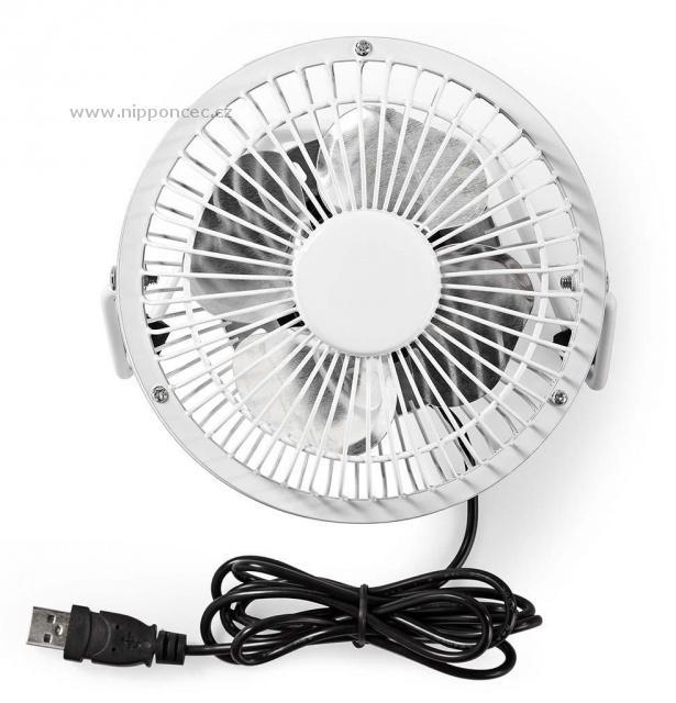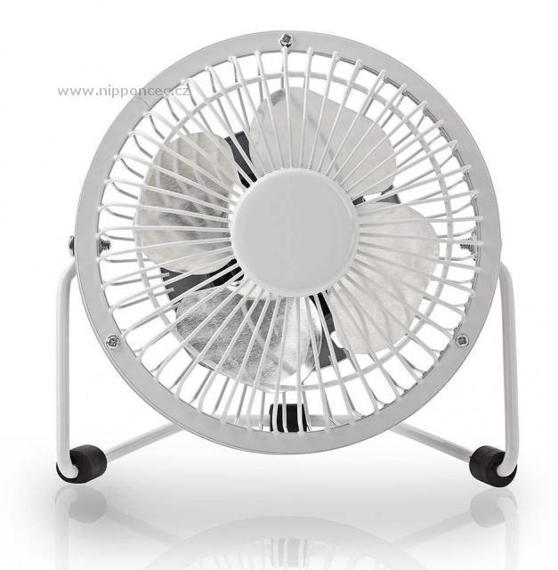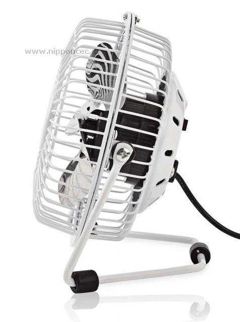 Stolní mini ventilátor kovový o průměru 10 cm + USB - bílý