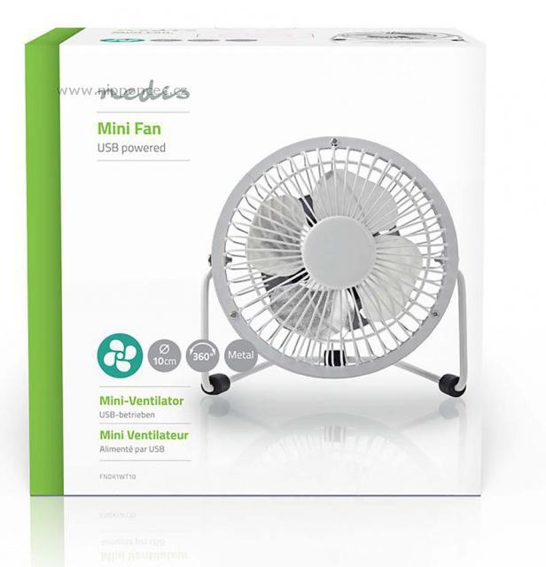 Zachovejte chladnou hlavu s tímto mini ventilátorem. Napájí se přes USB, takže jej stačí zapojit do powerbanky nebo notebooku. A díky jeho kompaktní velikosti se lehce vměstná i na přeplněný stůl. Jeho konstrukce je kovová, což zajistí odolnost a bezpečnost. Samotný ventilátor se otáčí o 360°, proto proud vzduchu můžete nasměrovat jakýmkoliv směrem.