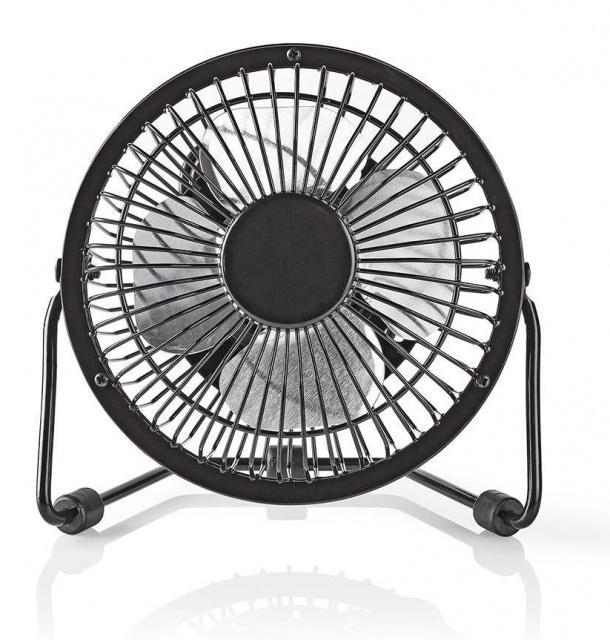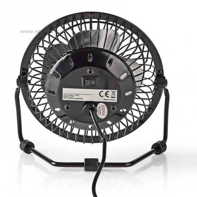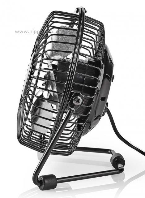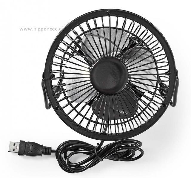 Stolní mini ventilátor kovový o průměru 10 cm + USB - černý