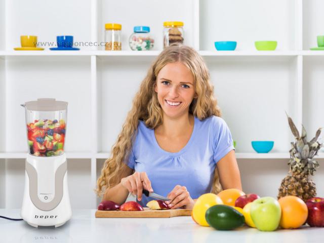 Rádi byste si připravili ovocný koktejl a stačil by vám pouze malý mixér? Tak přesně pro vás je určen stolní mixér Beper BP604, který má objem nádoby 500 ml. Pro snadné nalévání koktejlu má nádoba vytvarovanou výlevku. Během mixování, které zajistí 4 čepele z nerezové oceli, lze otvorem ve víku přidávat suroviny. Nádobu, čepele i víko můžete mýt v myčce na nádobí. Stabilitu na kuchyňské lince zajistí protiskluzové nožičky a o bezpečnost se postará bezpečnostní pojistka.