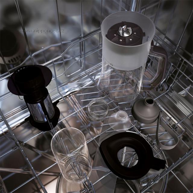 Se 3 předprogramovanými funkcemi, například pro polévky, smoothie, drinky nebo drcení ledu, se vám bude vařit jedna radost. Nesmí chybět 3 přednastavené rychlosti pro různé typy ingrediencí a moderní podsvícený ovládací panel s jedinečným designem. Nádoba o objemu 1,5 litru je vyrobena ze "zdravého plastu" bez BPA příměsí. Mixér je dodáván s praktickou přenosnou láhví z tritanu o objemu 500ml. Tuto láhev společně s nádobou a 6 noži s různým sklonem, lze bezpečně mýt v myčce nádobí.