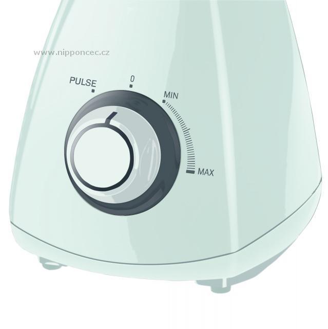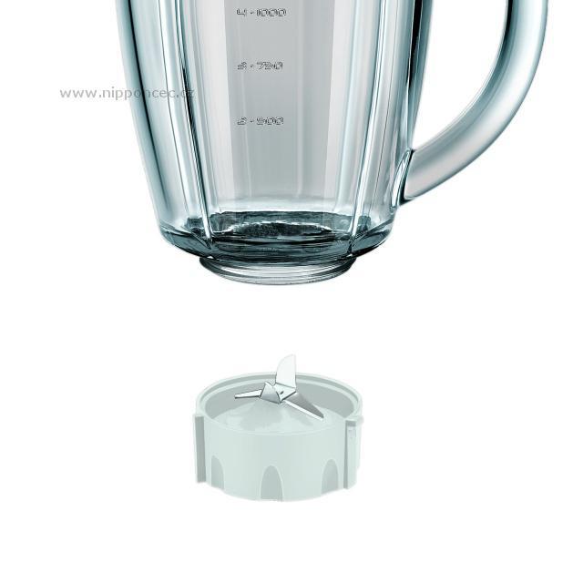 4 nerez nože, pulsní spínač s LED osvětlením, skleněná nádoba o objemu 1,5l
