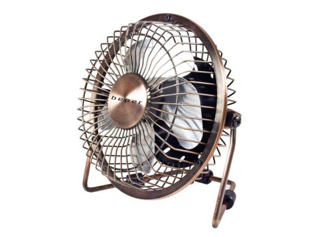 Stolní USB RETRO ventilátor BEPER VE402 s oscilací 360° je vhodný pro pracovní stoly doma i v kancelářích. Měděný kovový design a čtyři hliníkové lopatky nadchnou nejen milovníky retra, které je moderní a trendy. Dodává se s USB kabelem včetně adaptéru.