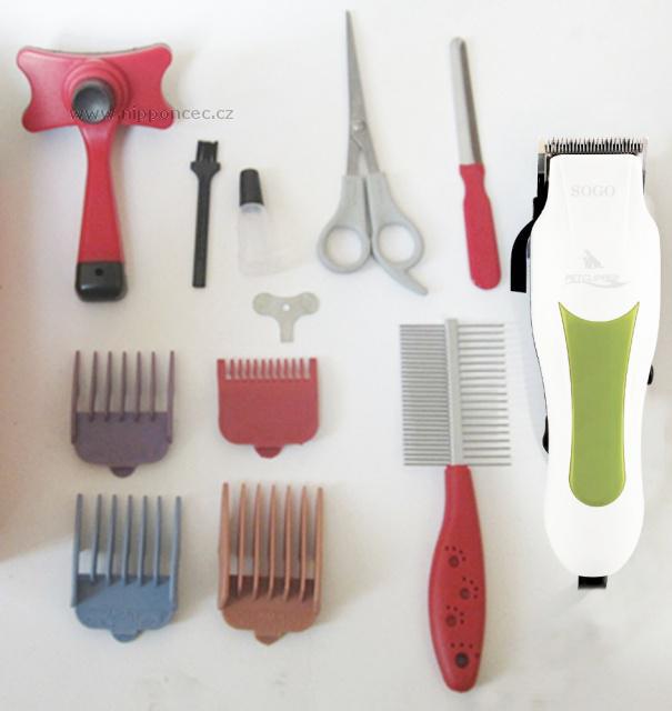 ►Střihací strojek Sogo C PES: Síťový, 4 přídavné hřebeny, navíc hrablo a nůžky