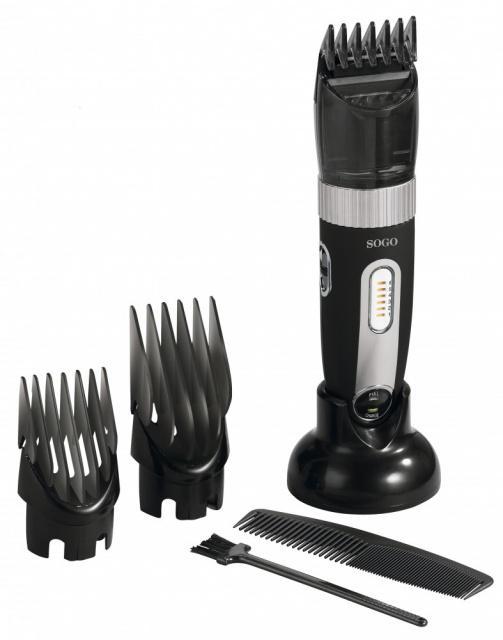 Střihací strojek Sogo se zásobníkem na vlasy, aku i síť