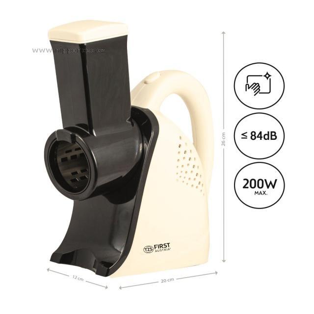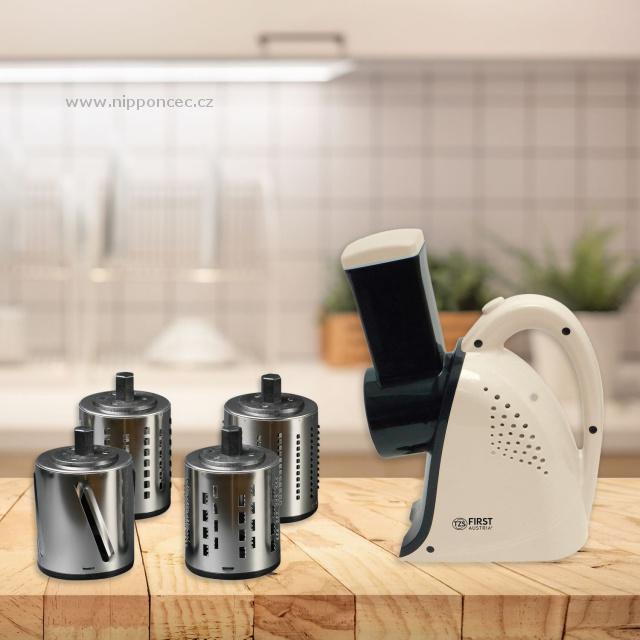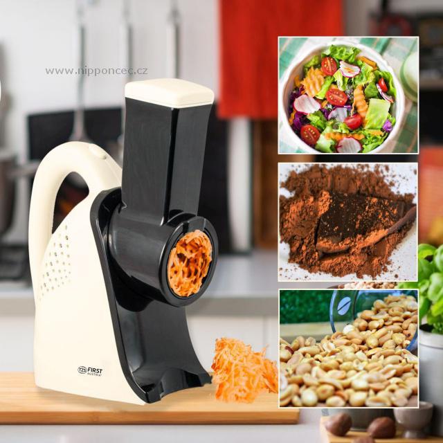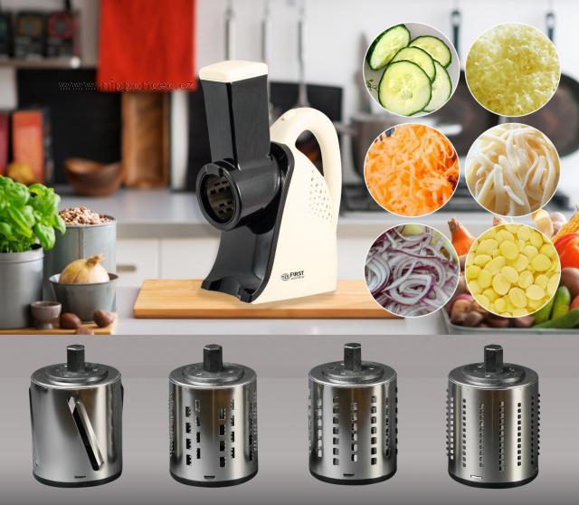 Multifunkční elektrické struhadlo pro zjednodušení strouhání mnoha druhů zeleniny, brambor, ovoce, sýra. Součástí balení jsou výměnné kotouče: na plátky, hranolky, na jemno, na hrubo. Součásti lze mýt v myčce nádobí, vkládací otvor na potraviny je komfortně velký - 50x60 mm. Přítlačný váleček je v příslušenství. Praktický pomocník do kuchyně za přiměřenou cenu.