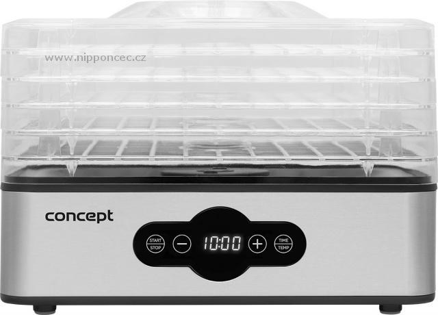 Sušička ovoce a zeleniny Concept SO1011 s výkonem 240 W a digitálním ovládáním.