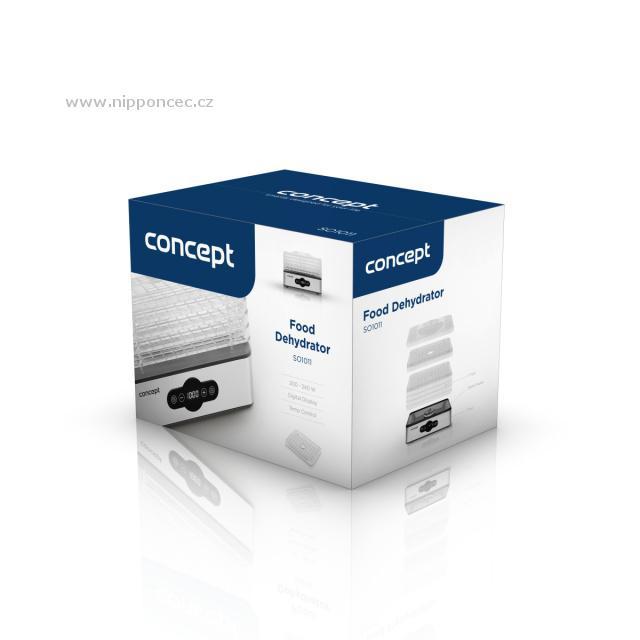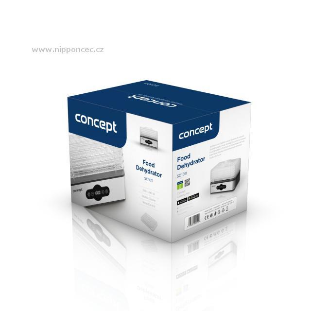 Sušička ovoce a zeleniny Concept SO1011 s výkonem 240 W a digitálním ovládáním. Disponuje 5 sušicími platy a praktickým hranatým tvarem pro lepší skladnost. Nabízí možnost univerzálního sestavení plat a časovač až na 99 h.