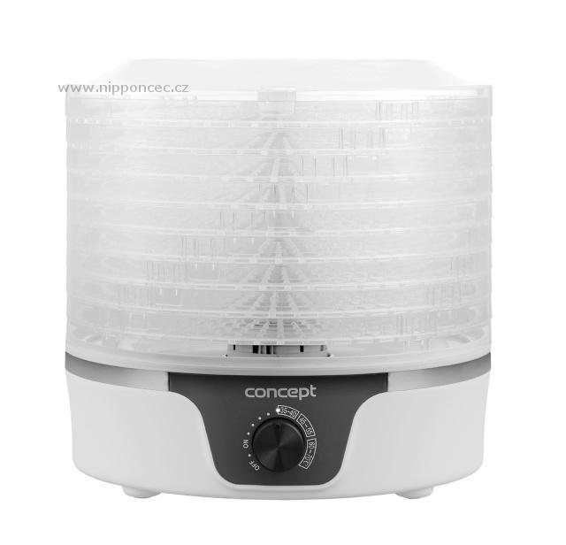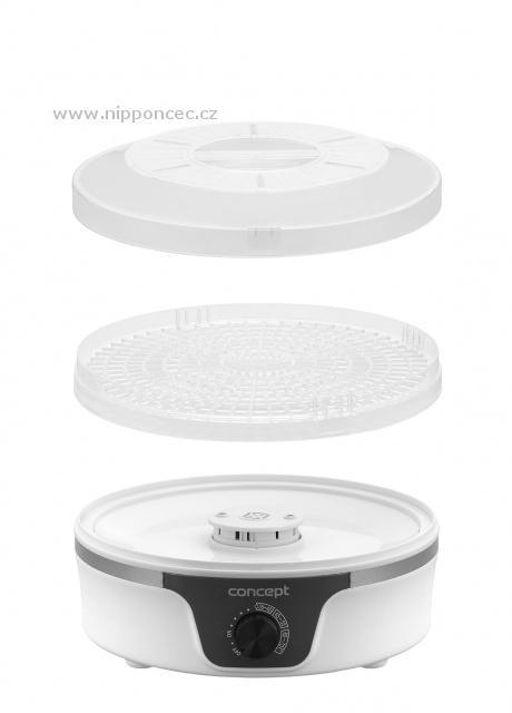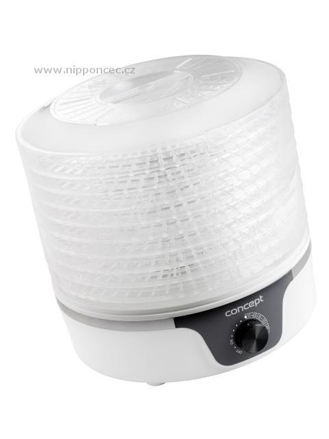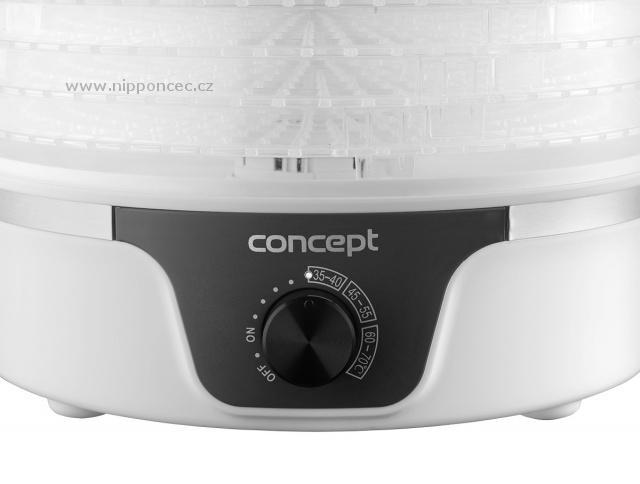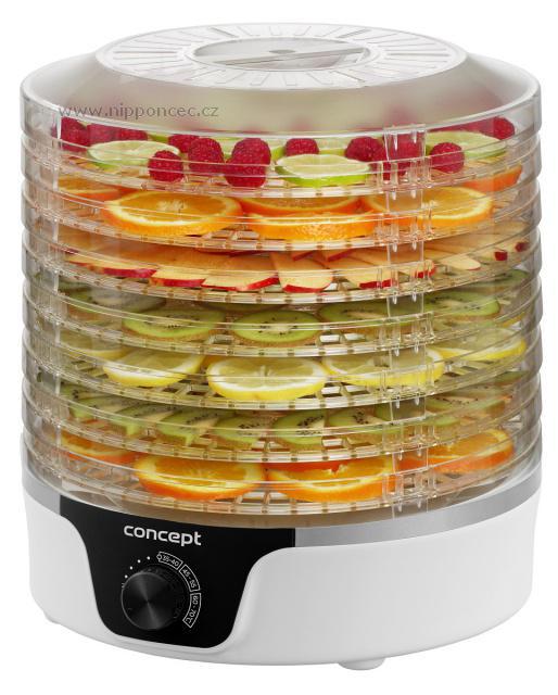 Sušička ovoce a zeleniny Concept SO2080 s příkonem 260 W disponuje 6 výškově nastavitelnými platy, regulací teploty od 35 – 70°C, časovačem a ventilátorem pro rovnoměrné sušení.