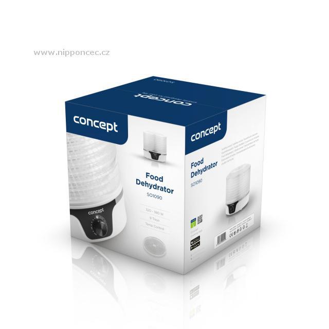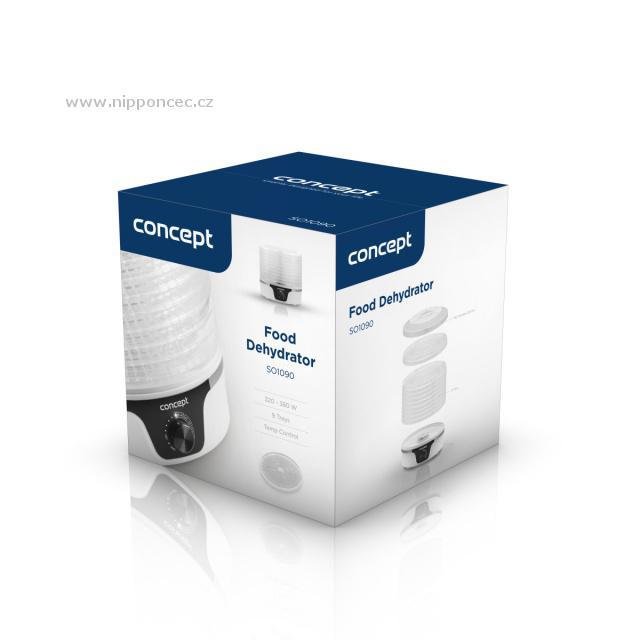 Sušička ovoce a zeleniny Concept SO1090 s výkonem 380 W disponuje 9 sušicími platy a plynulou regulací teploty v rozmezí od 35 do 70 °C. Nastavitelná výška plat. Usušíte v ní ovoce, zeleninu, houby, bylinky, květiny nebo těstoviny.