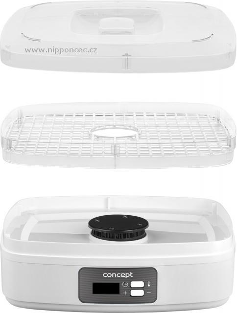 Sušička ovoce a zeleniny Concept SO2080 s výkonem 260 W disponuje 6 výškově nastavitelnými platy,