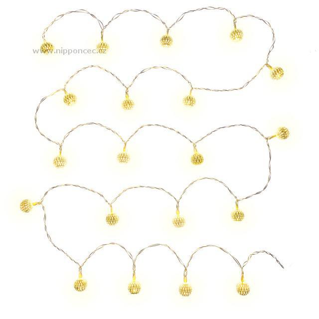 Světelný řetěz Retlux stříbrné kuličky, 20 x LED / 3,3 m