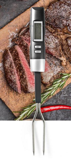 Patříte mezi nezkušené kuchtíky, ale rádi experimentujete a překonáváte hranice? Připravte si steak, burger nebo pečínku dle vašich preferencí za pomoci digitálního teploměru Nedis KATH108GY. Sondy teploměru stačí vložit do pokrmu a během pár sekund zjistíte, jakou vnitřní teplotu pokrm má. Pro usnadnění je vybaven 6 přednastavenými teplotami dle druhu masa (hovězí, vepřové, kuřecí, telecí, krůtí, jehněčí) a mírami propečení (well, medium, M rare, rare). Sondy jsou vyrobeny z hygienické nerezové oceli a velice snadno se čistí. Pro snadné uložení je teploměr vybaven závěsným háčkem. Tento teploměr na maso s rozsahem teploty až do 110 stupňů se hodí pro přípravu nejrůznějších pokrmů a pečínek.