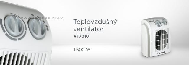 Teplovzdušný ventilátor Concept VT7010 je malé topítko, které je možné snadno přenášet z místnosti do místnosti. Je vybavené funkcemi topení, studený vzduch a ventilátor a pracuje na dva stupně nastavení výkonu: 750 a 1500 W. Samozřejmostí je pojistka proti přehřátí.