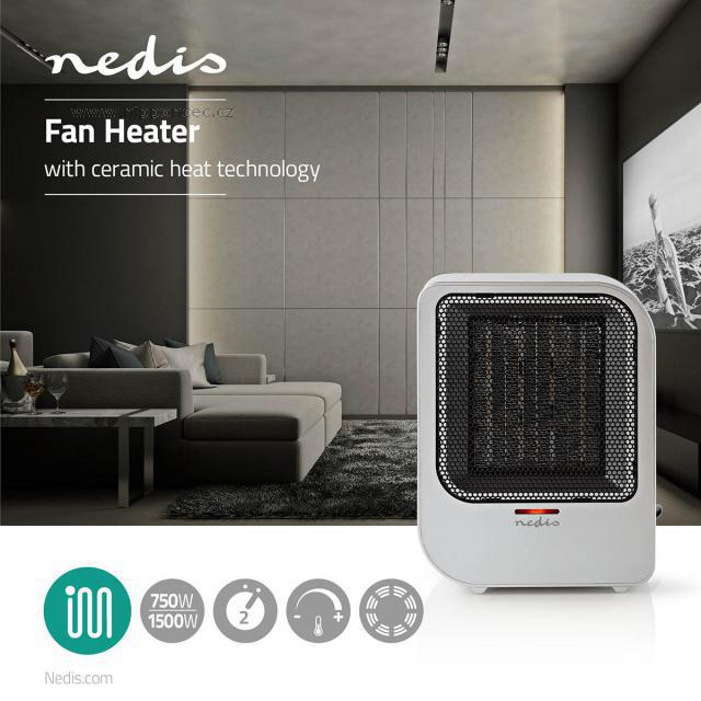 Teplovzdušný ventilátor s keramickým topným tělesem Nedis HTFA12CGY, 750 a 1500 W