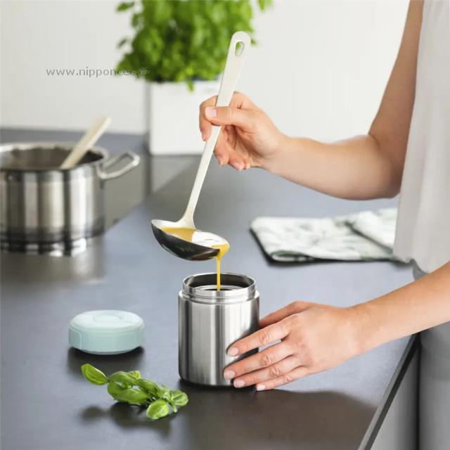 Tepelně izolační nádoba na jídlo XAVAX To Go 181588 je vhodná na polévky, zmrzlinu a další horké i studené pokrmy. Nádobu lze využít do práce, do školy, na cesty či výlety. Dvojitá stěna s vakuovou technologií udrží pokrm horký přibližně 6 hodin a studený přibližně 9 hodin. Šroubovací uzávěr se silikonovým těsněním odolný vůči vytečení. Před naplněním nádobu vypláchněte horkou/ledově studenou vodou.