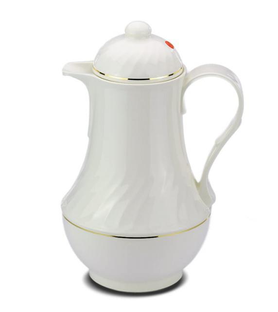Kvalitní termoska se skleněnou vložkou od německé firmy Rotpunkt o objemu 1 l je ideální pro domácnosti, kanceláře, hotelové snídaně, pořádání rautů a večírků. Nápoj lze nalít bez nutnosti úplně odšroubovat víčko, stačí pootočit uzávěrem o 90 stupňů. Při plném naplnění uchová teplotu nápoje cca 12 hodin. Je dodávána v retro designu ve vzhledu porcelánové konvice, se zlatým dekorem.