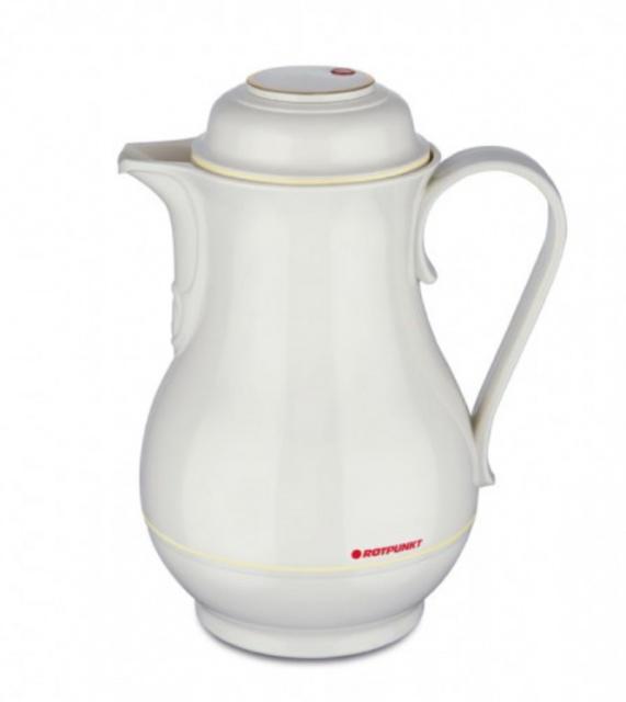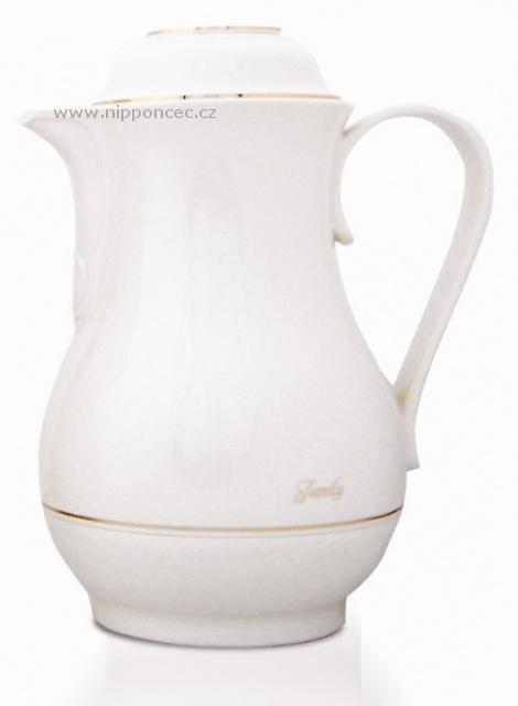 Kvalitní termoska s plastovým krytem, a skleněnou vložkou německé výroby. Šroubovací uzávěr lze odšroubovat lehkým pohybem pro nalití nápoje z termosky pouze zčásti - snadné nalévání. Při plném naplnění uchová teplotu nápoje cca 12 hodin. V retro designu - vzhled porcelánové konvice, se zlatým dekorem.