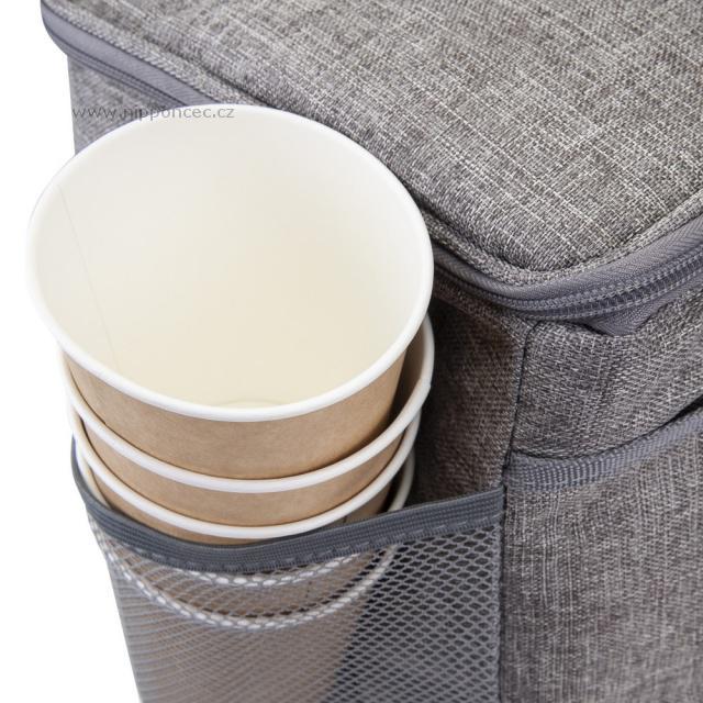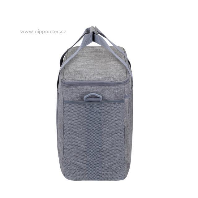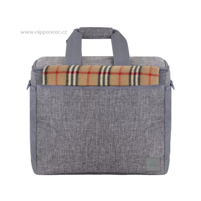 Prostorná chladicí taška RivaCase Torngat je vhodná na piknik, cestování i k převážení nákupu v horkých letních dnech. Objem izolovaného prostoru činí 30 litrů a pojme až 54 plechovek o objemu 330 ml. Z vnější strany je vyrobena z kvalitní voděodolné tkaniny odolné vůči nečistotám a její světlá barva nepřitahuje sluneční paprsky. Termotaška je navržena s maximální pozorností na detaily, součástí jsou 4 kapsy (tři vnější a jedna vnitřní) a odnímatelný popruh na přenášení se spolehlivým upevněním na dně tašky.