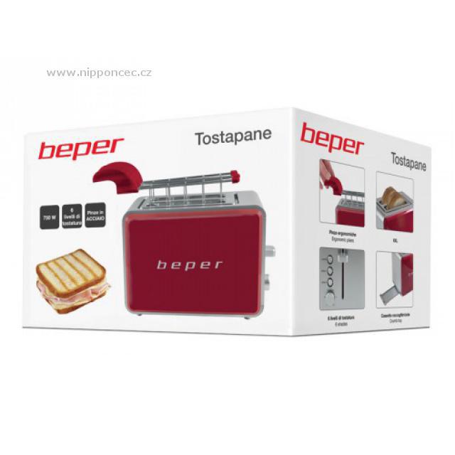 Topinkovač BT001-R od italské značky BEPER, výkonem 750 W, v červeném provedení, je určený pro přípravu 2 lahodných toastů tloušťkou do 3,5 cm. Tento toastovač má 6 teplotních stupňů výkonu a 3 funkce (rozmrazování, ohřev, stop), je vybavený ergonomickou rukojetí pro vyndání horkých toastů a praktickým vyjímatelným táckem na drobky. Díky svému poutavému elegantnímu provedení dobře zapadne do jakékoliv domácnosti.