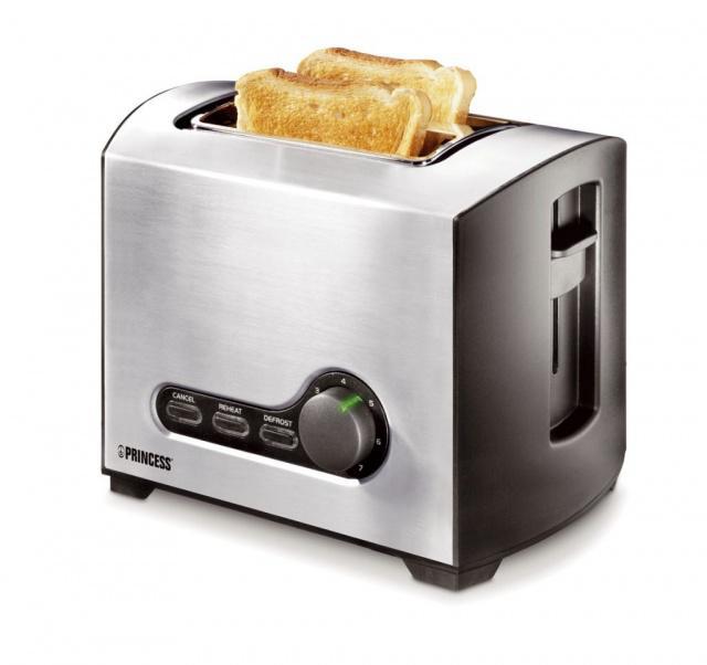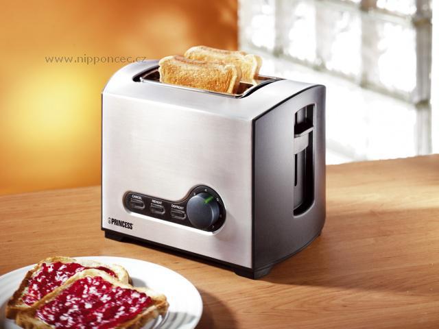 Topinkovač Princess má automatické vyhazování toastů. Je vybaven teplotním senzorem, nastavitelným stupněm opečení - zhnědnutí, tlačítkem stop pro okamžité ukončení opékání, funkcí ohřevu, podnosem na drobky, tlačítkem pro zmrazený chléb.Součástí balení je nástavec na rohlíky a housky. Vyhazovací mechanismus je vysoký - pro jednoduché vyjmutí topinky. Topinkovač Princess má automatický centrovací mechanimus pro rovnoměrné opečení. Plně vybavený výrobek.