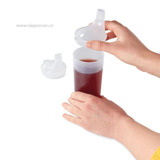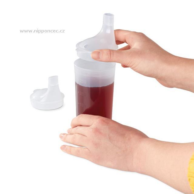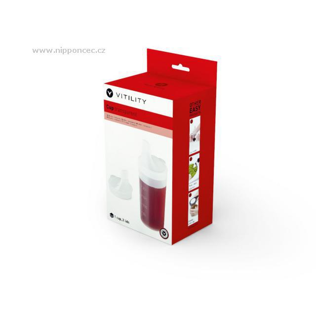 Transparentní hrnek Vitility 70210010 je vhodný pro lidi s omezenou hybností a také pro ležící pacienty, u kterých je potřeba sledovat, kolik toho vypijí. Hrnek má dvě víčka s pítky. Jedno pítko má menší otvor a je určeno k pití tekutin, druhé s větším otvorem je vhodné pro potraviny jako jsou kaše, jogurty. Maximální objem hrnku je 250 ml a je vhodný do mikrovlnné trouby a myčky. Doporučujeme k hrnku dokoupit také držák Vitility 70210020.
