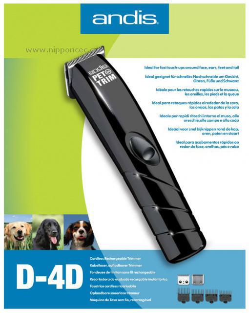 ►Střihací strojek Andis D4D:60 minut po plném dobití, součástí 4 výměnné hřebeny 1,6 mm, 3,2 mm, 6,4 mm, 9,5 mm