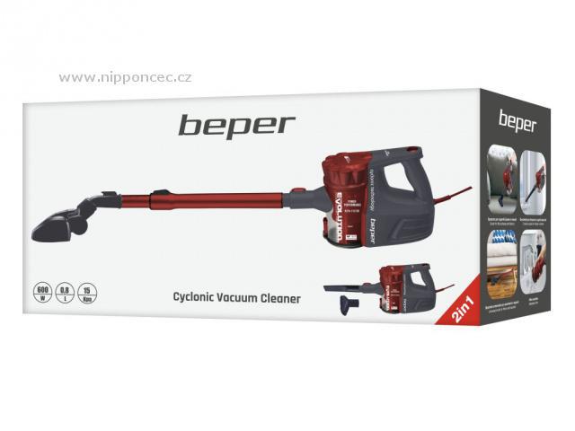Bezsáčkový tyčový vysavač BEPER P202ASP001 2v1 umožňuje díky síťovému napájení vysoký sací výkon, ale zároveň je velmi skladný a zabere ve vaší domácnosti málo místa. Po odnětí teleskopické trubice získáte praktický ruční vysavač pro vysávání nábytku apod. Nádoba na nečistoty o objemu 0,8 litru je velmi snadno vyprázdnitelná. Filtr vysavače je omyvatelný. Vysavač je vhodný pro podlahy z tvrdého dřeva, koberce, stěny, závěsy, nábytek a dokonce i pro stropy. Součástí příslušenství vysavače je podlahový kartáč, kartáč na pohovku a štěrbinová hubice.