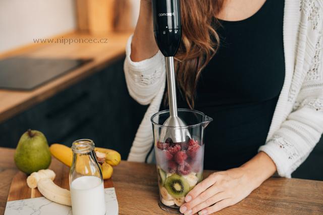 Praktický tyčový mixér Concept TM4830 s příkonem 1000 W si hravě poradí i s hutnějšími potravinami a ledem. Hodí se k přípravě polévek, omáček, pomazánek, přesnídávek nebo koktejlů. Nástavec má vyrobený z kvalitní nerezové oceli, takže s ním můžete mixovat i horké pokrmy přímo v hrnci. Oceníte jeho ergonomicky tvarovanou rukojeť, plynulou regulaci rychlosti a režim TURBO pro krátkodobé dosažení maximálních otáček. Součástí balení je mixovací nádoba o objemu 800 ml, kterou můžete dát do myčky nádobí.