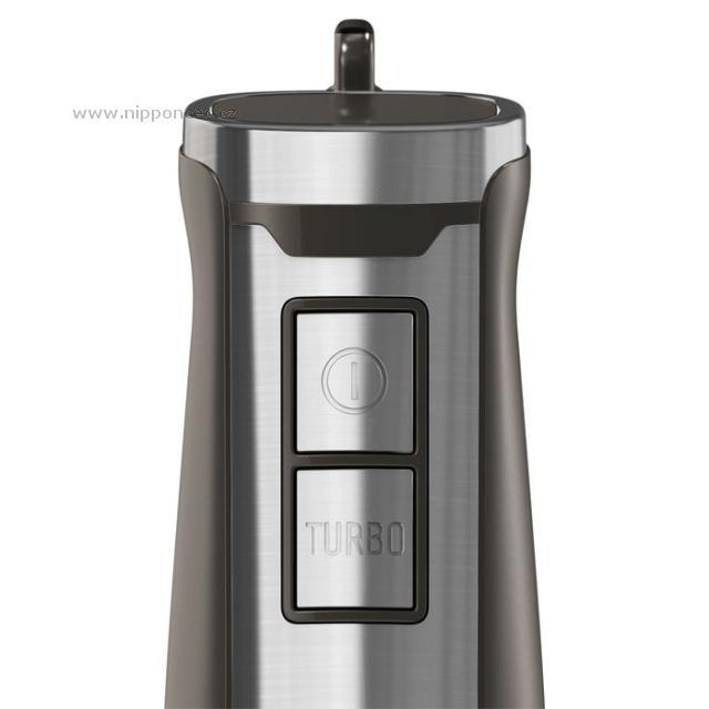 Celonerezový elegantní tyčový mixér Electrolux ESTM7500S řady Expressionist je vybaven dlouhou nerezovou nohou pro snadný přístup, mixovací nádobou a sekací nádobou s dvojitým nožem, jehož čepele jsou potažené titanem, který rozdrtí i led. Součástí balení je i hlavice se šlehací metlou. Pro ušetření času je ponorný mixér vybaven funkcí plynulé regulace otáček - Turbo funkcí - pro rychlé a hladké výsledky. Navíc s výkonným 700W motorem rozmixuje i ty nejtvrdší přísady jako jsou semínka při přípravě pesta. Zařízení je navíc vybaveno funkcí soft start, kdy mixování začíná na nižších otáčkách a postupně se otáčky zvyšují. Tak je zajištěno, že obsah nevystříkne z misky. Všechno příslušenství je vhodné k mytí v myčce.