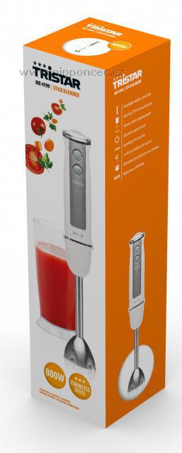 Ponorný mixér Tristar MX 4199 s nerezovým mixovací nástavcem a vysokým výkonem 800W a silným, spolehlivým motorem. Tyčový mixér se snadno ovládá a dobře čistí. Můžete jej dobře ovládat jednout rukou. Mixovací nástavec lze sejmout snadno stisknutím dvou uvolňovacích tlačítek na boční straně mixeru.