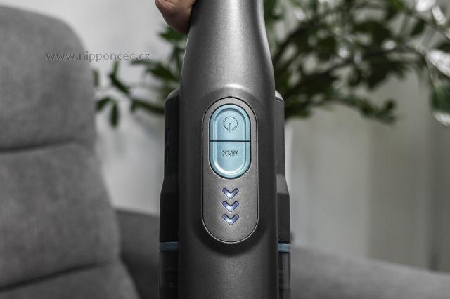 Vysavač je osazen dobíjecí Li-Ion baterií s kapacitou 2200 mAh, která mu dává maximální volnost pohybu. K vysávání můžete volit ze dvou stupňů výkonu. Po spuštění pracuje v základním režimu, který je vhodný na běžný úklid tvrdých podlah. Sací síla vysavače dosahuje 10 kPa a výdrž na jedno nabití až 30 minut. Potřebujete-li vysát větší množství nečistot, můžete zvolit režim MAX se sací silou 20 kPa. Při použití maximálního výkonu se provozní doba vysavače zkracuje. O aktuálním stavu baterie vás informují 3 světelné kontrolky umístěné pod ovládacími tlačítky.