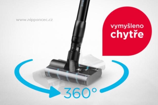 Plně otočný kloub o 360° usnadňuje vysávání a ve spojení s lehkou konstrukcí zaručuje velmi dobrou manipulaci s vysavačem. Pohodlně vysajete i hůře dostupná místa. S celkovou hmotností pouhých 1,77 kg patří tento model mezi nejlehčí tyčové vysavače na trhu.