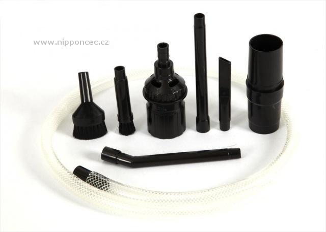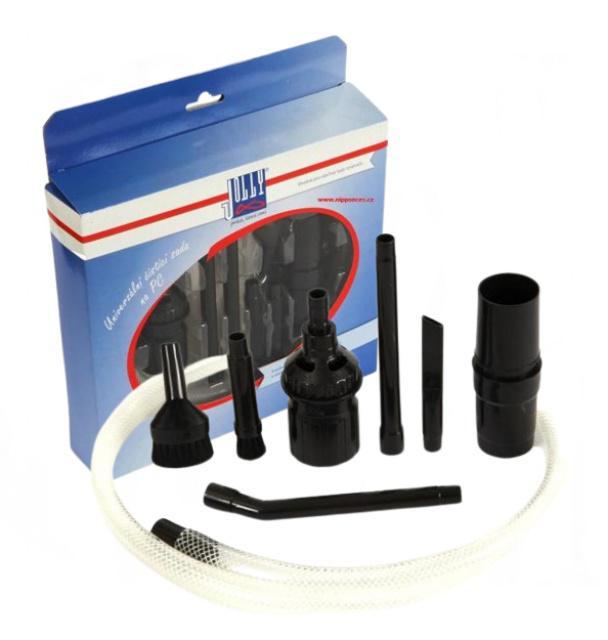 Univerzální čisticí sada k vysavači na PC a jiné malé prostory k mnoha vysavačům různých výrobců (s trubkami 28, 30, 32 a 35 mm). Praktická sada se 7 nástavci pro čistění PC nebo podobných, malých a úzkých prostor, set malých užitečných nástrojů pro efektivní úklid. V sadě redukce na trubice 28/32 mm, průhledná pružná hadice, nástavec rovný i zahnutí a další šikovné pomůcky, se kterými můžete vysávát místa těžko přístupná.