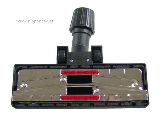 Podlahová hubice UNI (30-37 mm) s kolečky a kartáčem k vysavačům univerzální Kombinovaná hubice univerzální k k vysavači 30 - 37 mm průměr trubky na koberce a podlahy je kombinovaná hubice - hlavní hubice k vašemu vysavači. Podlahová hubice je určena jak na koberce tak s vysunutím kartáče na pevné podlahy.Univerzálnost podlahové hubice je dána kruhovou maticí (univerzální adaptér) pro 30 až 40 mm průměr trubek tedy pro všechny běžné modely domácích vysavačů. Univerzální hubice s přepínáním má nerezovou skluznou plochu a lapače nečistot z veluru na spodní části.